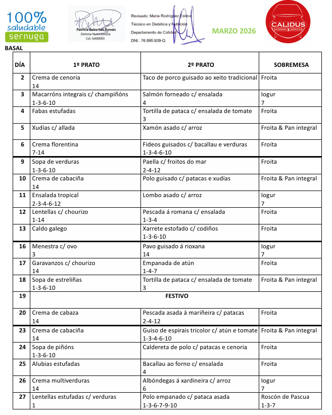 Consulta xa o menú especial para este mes de Marzo.